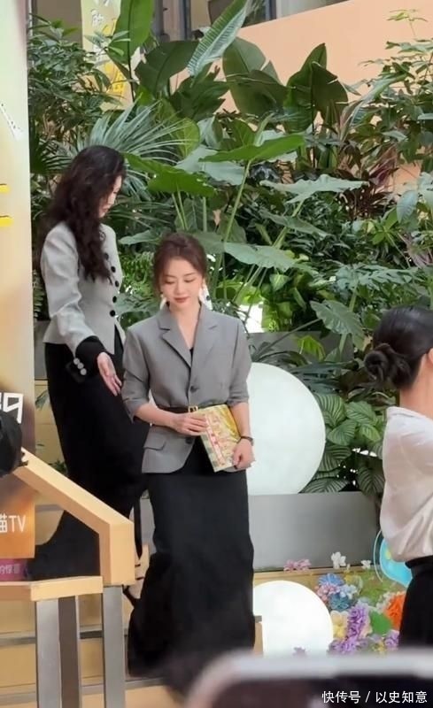 当天她选择一套灰调修身西装外套,内搭同色系深灰长裙,无繁复装饰,无浓艳色彩,整体造型干净得近乎朴素。