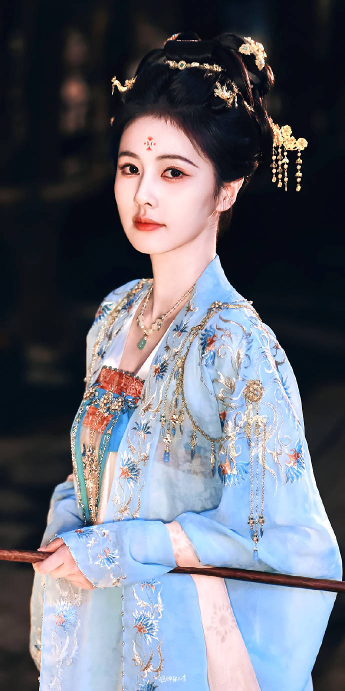 除了这两位,剧中其他女演员也各有亮点。赵晴饰演的五仁是李佩仪的得力助手,灵动俏皮的造型像清泉一样讨喜,既能在紧张探案时插科打诨缓解气氛,勘验尸首时又秒变专注小能手,活脱脱一个“情报小机灵鬼”。张维娜饰演的宁远公主则是妥妥的悲剧美人,华贵的扮相难掩眼底哀愁,坠楼那场戏仅凭眼神就让无数观众心碎。还有代露娃一人分饰两角,白天是娇柔嫔妃,夜晚化身“壁画杀手”,眼神切换间全是戏;赵子琪演的淑妃更是“笑里藏刀”的典范,端庄外表下全是算计,老戏骨的功底果然不一样。